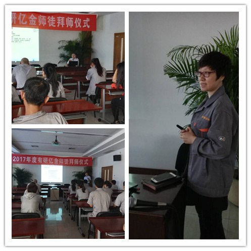 拜師儀式,呂總介紹了公司發(fā)展歷程,李總介紹了我司師徒制情況,各部門負責人介紹了本部門基本情況,通過這些介紹讓新員工們更加全面的了解了公司。之后新員工們依次做了自我介紹,新員工代表張曉娜進行了發(fā)言,她表示公司保留著傳統(tǒng)的傳承方式——師徒培養(yǎng)制度,讓初入職場的新員工多了一份責任感與歸屬感,以后定會愛崗敬業(yè)、虛心求教,不辜負領(lǐng)導(dǎo)和師傅們的期望。之后公司黨支部書記呂保國同志表示有研億金成立十七年來,秉承“創(chuàng)業(yè)、創(chuàng)新、發(fā)展、奉獻”的經(jīng)營理念,已穩(wěn)步快速發(fā)展為一家具備一定產(chǎn)業(yè)規(guī)模、在行業(yè)內(nèi)具有良好影響力的高科技企業(yè)。今年年底,二期建設(shè)即將投入使用,未來的億金,將在各位的努力下,創(chuàng)造出更大的輝煌。最后公司總經(jīng)理龐總表示熱烈歡迎大家加入有研億金,希望大家在今后努力工作,牢記有研億金核心價值觀“尊重、合作、創(chuàng)新、超越”。尊重—作為一個高科技企業(yè),要尊重人才、尊重科學(xué),發(fā)揮人才的主觀能動性。合作—在企業(yè)內(nèi)部、企業(yè)與上下游合作伙伴在管理、業(yè)務(wù)、產(chǎn)業(yè)融合等方面深入廣泛的合作, 推動產(chǎn)業(yè)不斷向前。創(chuàng)新—積極推進企業(yè)觀念、管理和體制創(chuàng)新,促進企業(yè)科學(xué)發(fā)展,培育人才,創(chuàng)造價值。超越—成為微電子應(yīng)用材料領(lǐng)域的技術(shù)引領(lǐng)者,實現(xiàn)產(chǎn)業(yè)跨越,經(jīng)營跨越,不斷超越自身、超越對手,永續(xù)經(jīng)營。我們要秉承著成為全球最具影響力的微電子用新材料及解決方案提供者的愿景,把握珍惜每一個機會,團結(jié)一致,眾志成城,共同創(chuàng)造有研億金美好的未來!