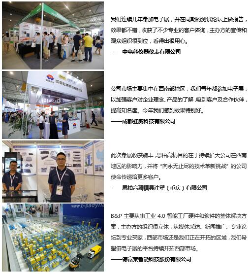 長虹集團(tuán)、九州集團(tuán)、重慶富士康、成都富士康、重慶格力電器、重慶軍工產(chǎn)業(yè)集團(tuán)有限公司、四川錦江電器、成都飛機(jī)工業(yè)集團(tuán)(132廠)、中航凱天(161廠)、成飛電子科技公司、華豐集團(tuán)、成都京東方、成都天馬微電子、成都泰格微電子、成都先進(jìn)功率半導(dǎo)體、成都康特電子、成都八九九科技、仁寶電腦、東方電氣等企業(yè)參觀團(tuán)